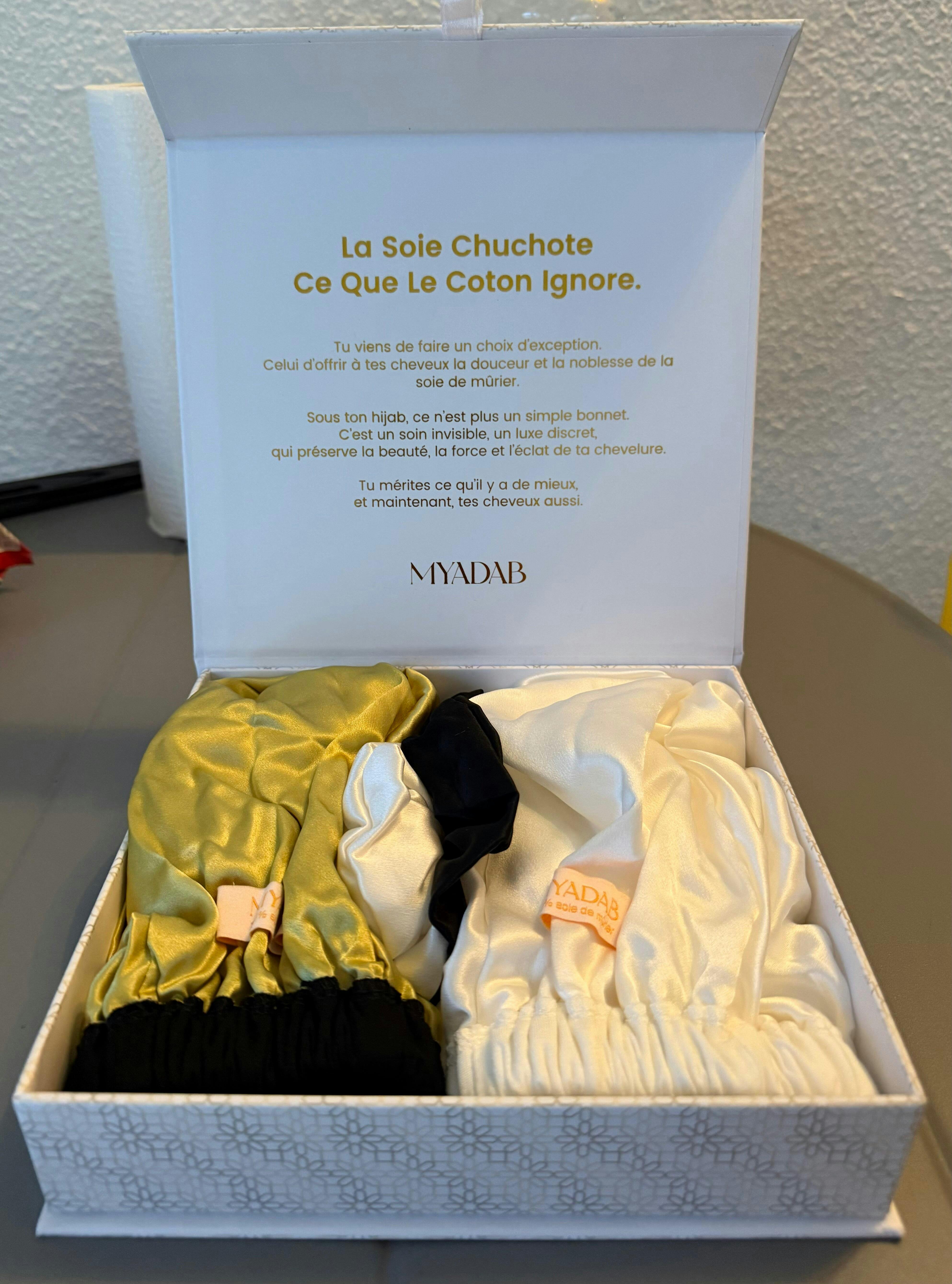 - Nous proposons des tissus avec des fibres naturelles, il n'existe aucun autre tissu capable de prendre soin des cheveux aussi bien que la soie de mûrier. Nous sommes non seulement les premiers à le proposer en sous-hijab, mais en plus les premiers à proposer un bonnet en soie de mûrier 23 mommes tout bonnet en soie confondu.